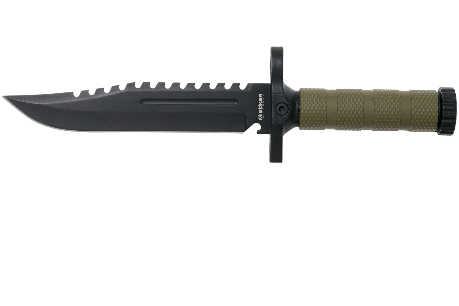 Le Böker Magnum M-Spec Survival Knife 02SC005 est un gros couteau de survie qui ressemble beaucoup au modèle Rambo du film du même nom sorti en 1982.