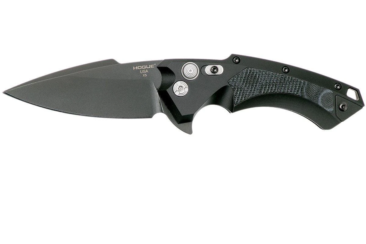 Le Hogue X5 3.5″ est un couteau de poche robuste conçu par Allen Elishewitz avec un flipper/button-lock. C’est une combinaison que vous ne rencontrez pas souvent. Ouvrez le X5 avec le flipper et un bouton fermeture button-lock maintient la lame en place.