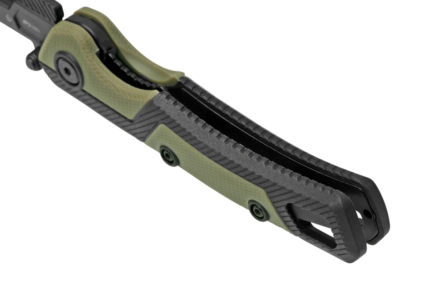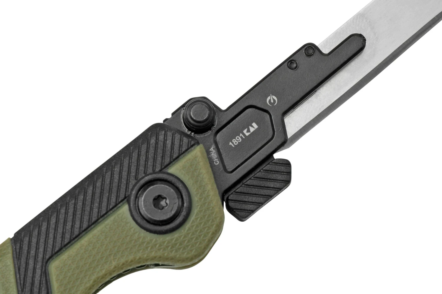 Le Kershaw Lonerock RBK 2 1891 est un couteau de poche unique, conçu spĂ©cialement pour la chasse. Vous ouvrez la lame avec le repose-pouce. Une fois ouverte, la lame est bloquĂ©e par un linerlock. Le manche est en FRN avec une fine couche de caoutchouc. Cela offre une excellente prise en main. Ce qui rend ce couteau si unique, c’est que l’on peut remplacer sa lame. Vous n’aurez jamais besoin de l’aiguiser ! Si elle vient Ă s’Ă©mousser, il suffit de la remplacer par une lame neuve rangĂ©e dans le fourreau inclus. En plus de la lame qui est montĂ©e sur le couteau, vous trouverez dans le fourreau pas moins de 14 autres lames de rechange. De quoi toujours avoir un couteau bien aiguisĂ© ! Le Kershaw Lonerock RBK 2 est Ă©galement livrĂ© avec un manche de rechange. Ce manche fin est spĂ©cialement conçu pour votre compagnon de chasse. Vous pourrez ainsi prĂ©parer le gibier ensemble.