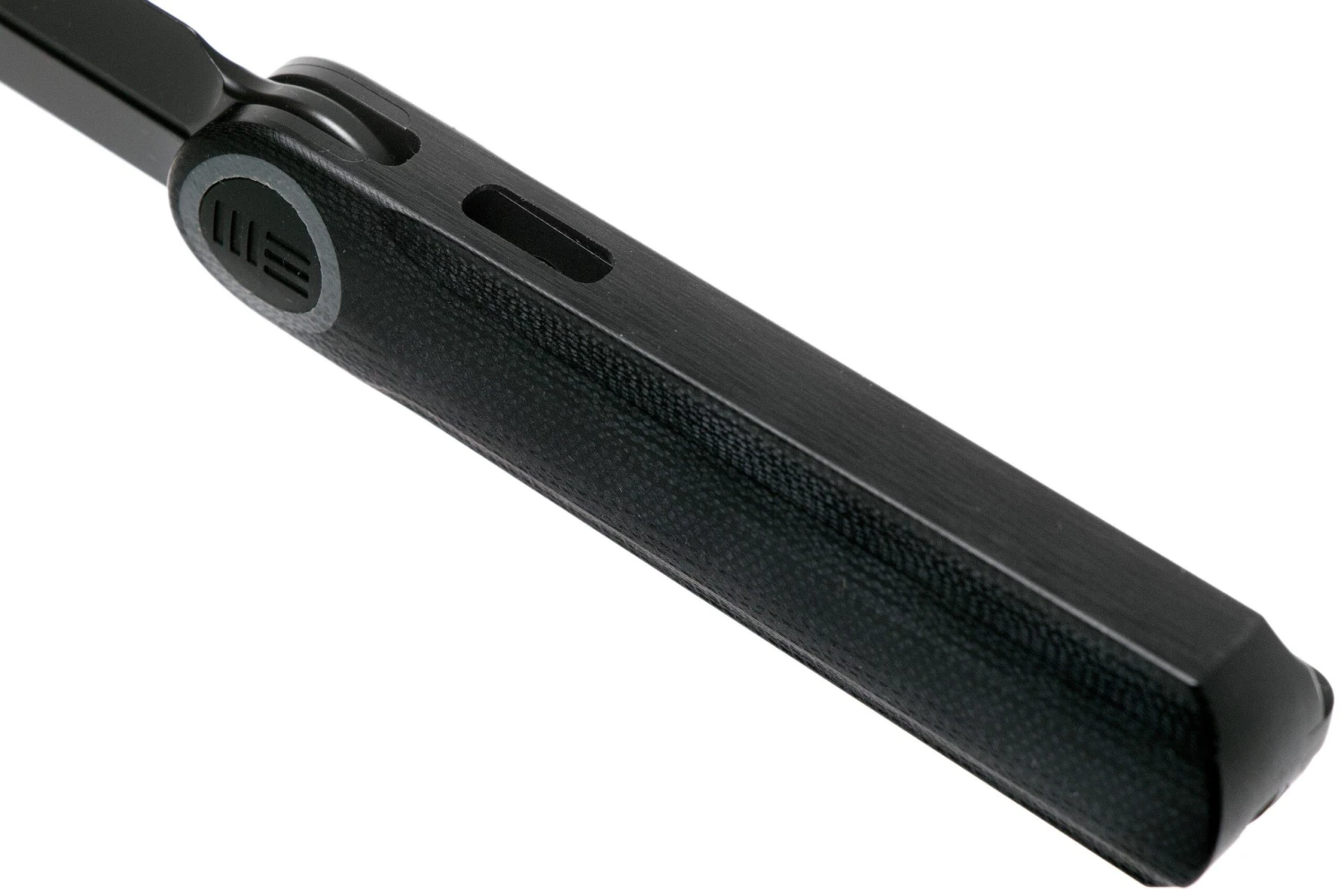 Le We Knife Eidolon est un couteau de poche fin avec flipper avant, conçu par Justin Lundquist. En rĂ©alitĂ©, on peut Ă peine le qualifier de flipper avant. Au lieu d’avoir le flipper loin Ă l’avant, on a des stries au dos de la lame. Ce qui donne assez de prĂ©hension pour tirer la lame en position fermĂ©e. L’action est très rapide.